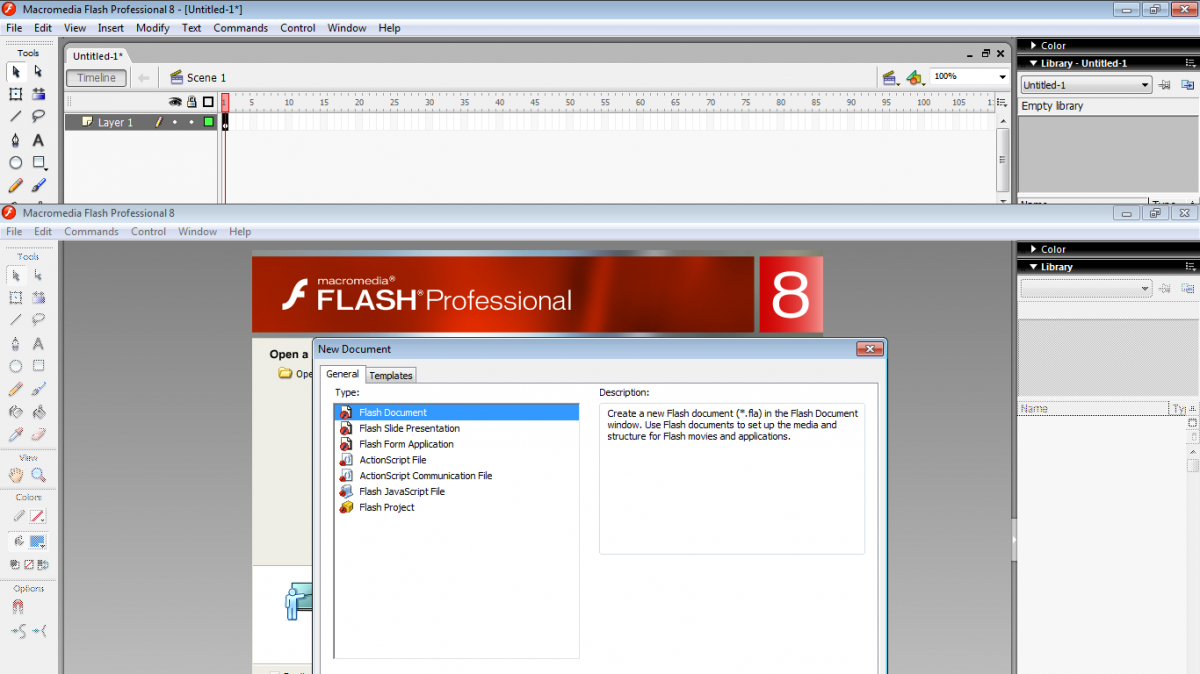 Buka Macromedia Flash 8. Cara membuat animasi di macromedia flash 8 A. Akan terbuka lembaran baru lembaran ini disebut Layer 1.